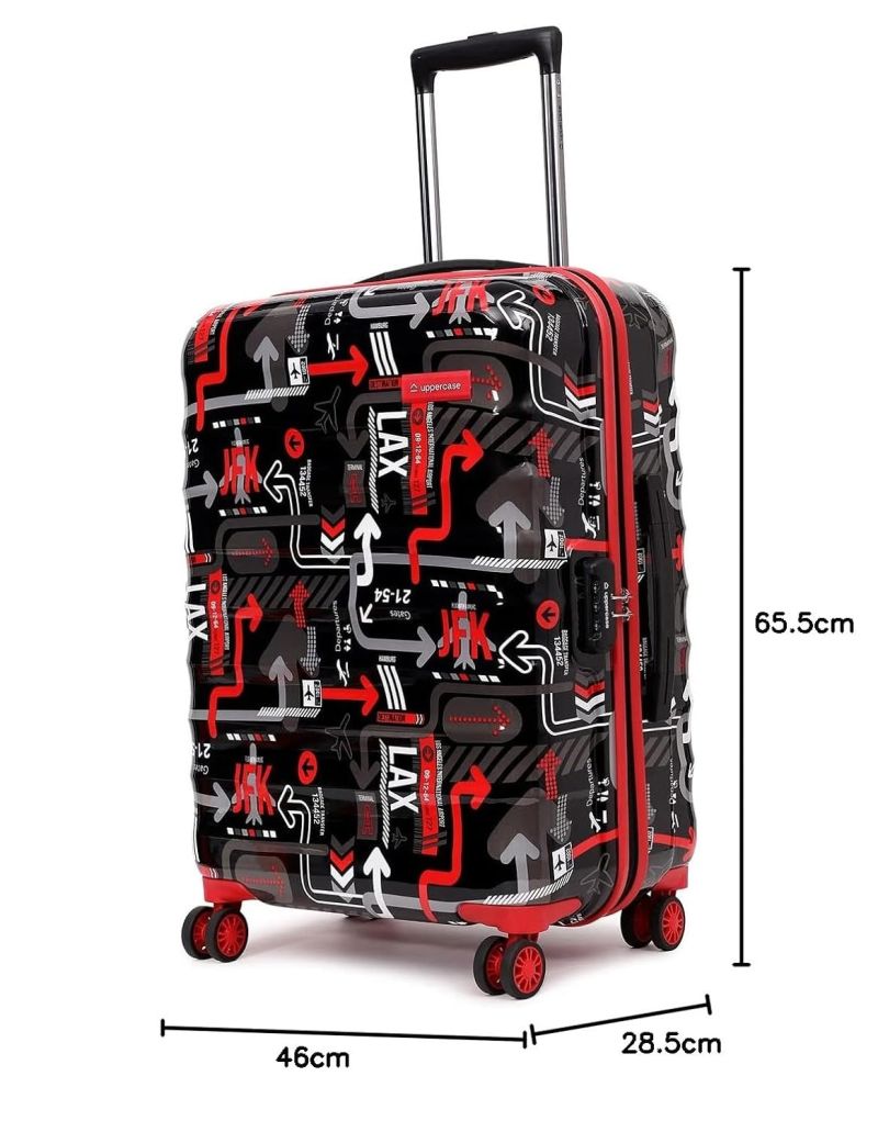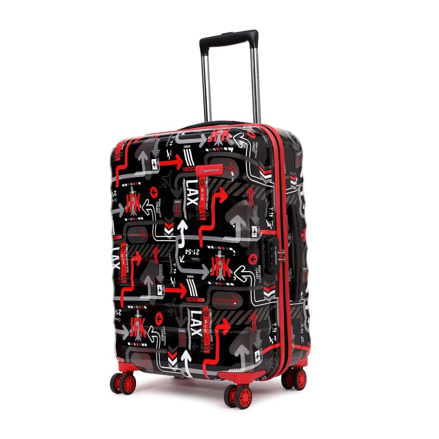 Uppercase JFK Trolley Bag Set of 2 (S+M) Hardsided Polycarbonate Cabin & Check-in Printed Trolley Bag|8 Wheel Speed_Wheel Suitcase for Men & Women|2000 Days Warranty (Black), 65.5 Centimeters