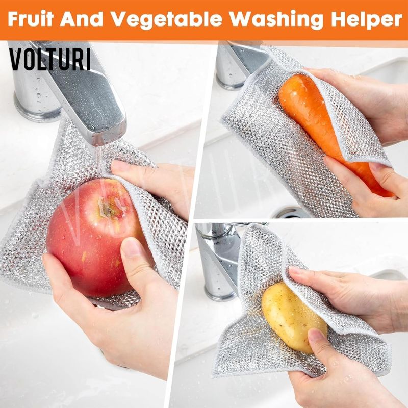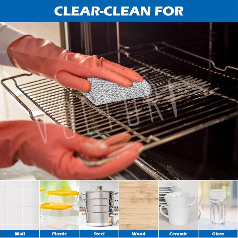 Scratch-Free Cleaning: VOLTURI Dual-layer mesh wire cloth scrubber for kitchen ensures effective cleaning without scratching delicate surfaces, keeping your kitchen accessories items for home looking brand new.