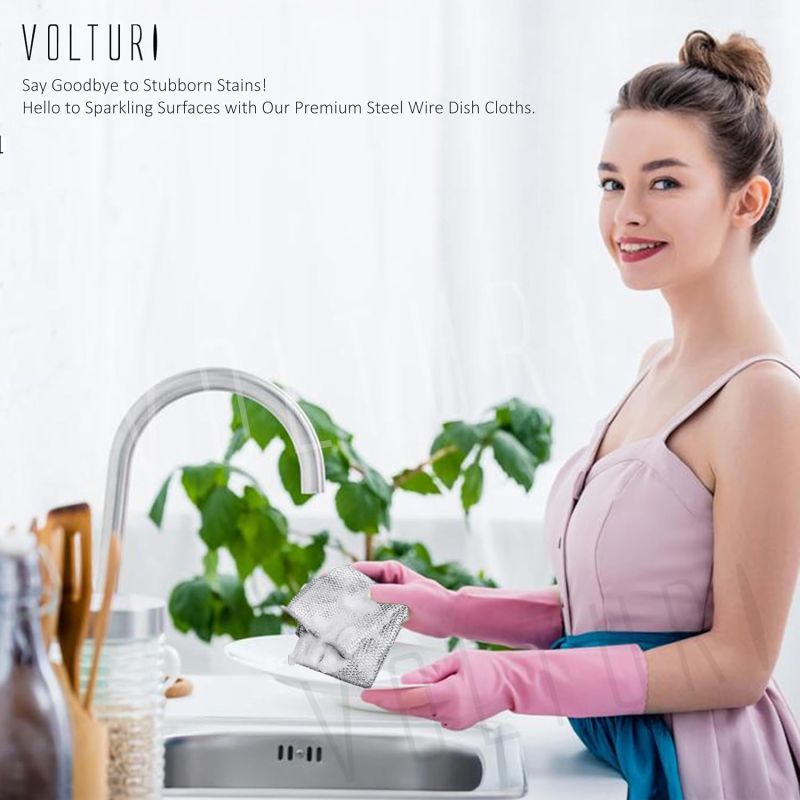 Reusable and Eco-Friendly: Say goodbye to disposable sponges and scrubbers – VOLTURI steel scrubber for kitchen reusable dish cloths help you reduce waste and save money in the long run.