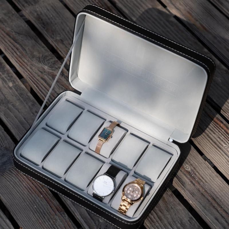 ⏰ Zipper Closure: Designed with a zipper closure, this box ensures easy use while preventing loss. Its compact and portable size allows you to carry this watch box anywhere, making it ideal for travel and outdoor adventures.