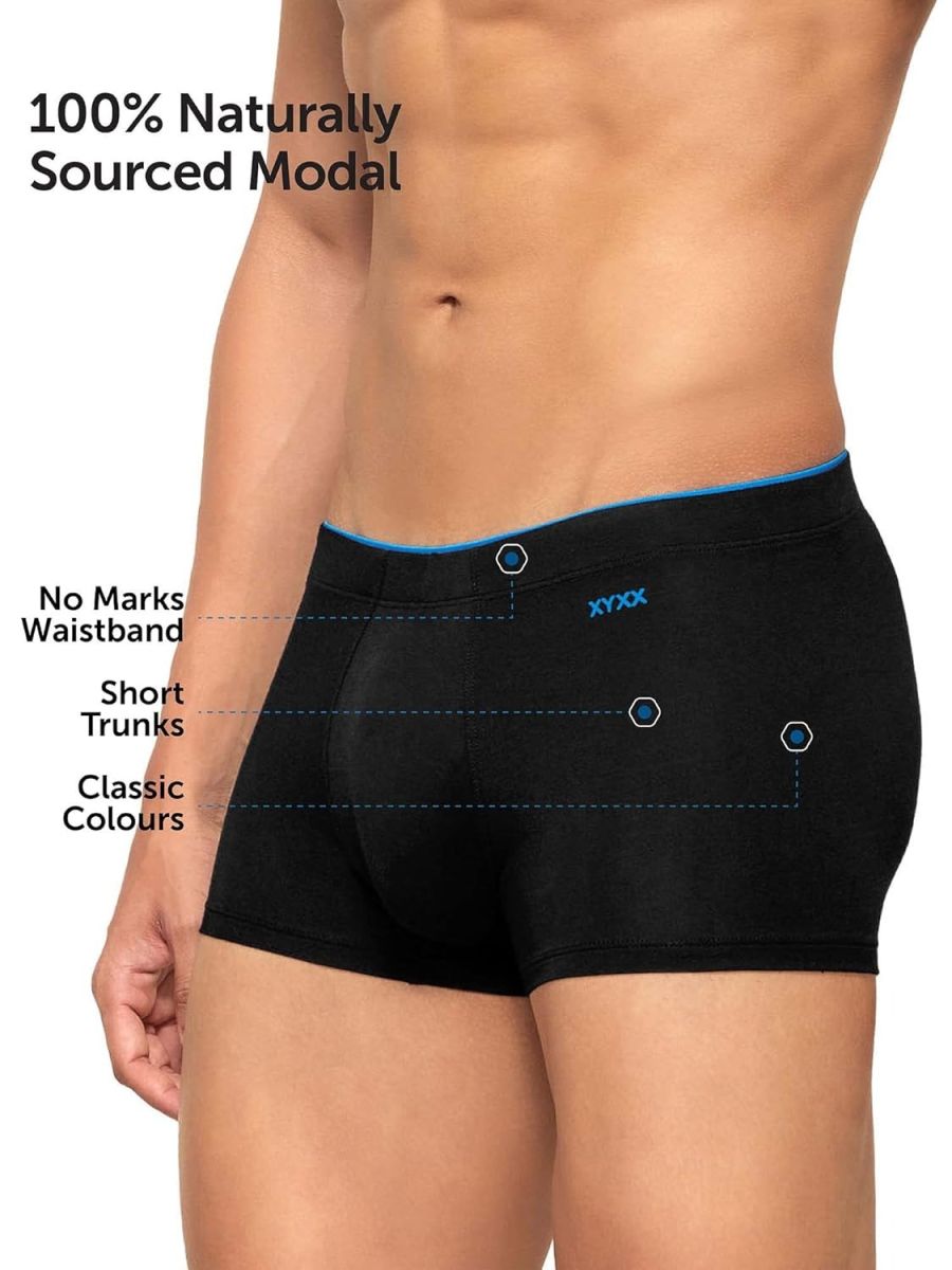 XYXX Men's Uno Micromodal Regular Fit Solid Antimicrobial Trunks with No Marks Waistband (Pack of 2)