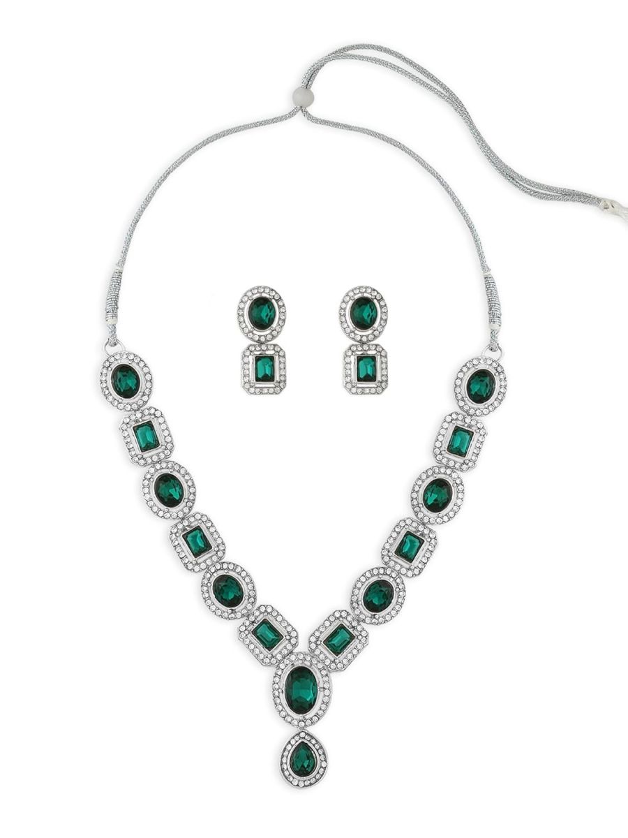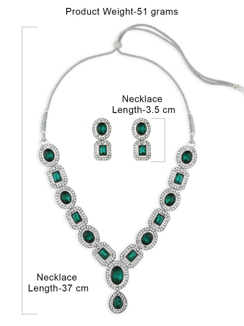ZAVERI PEARLS Green Stones & Dazzling Austrian Diamonds Embellished Necklace & Earring Set For Women-ZPFK17196