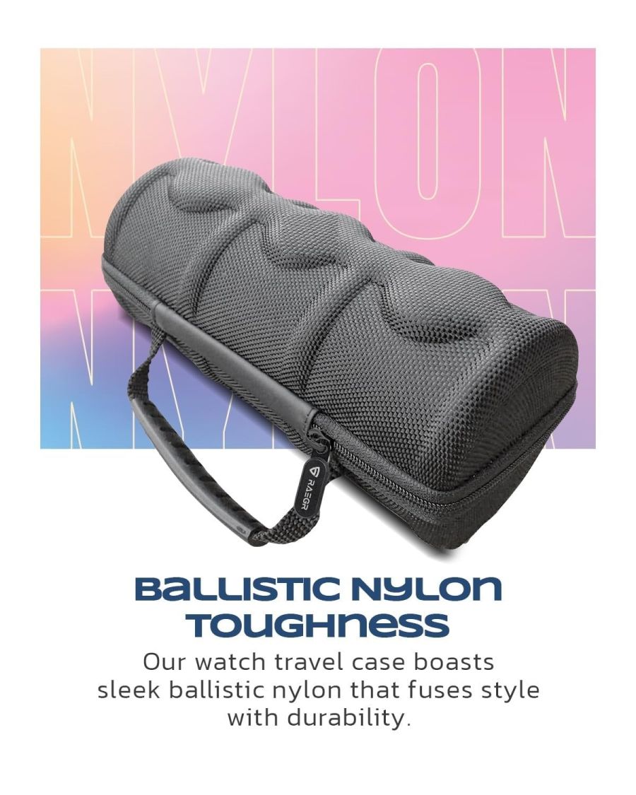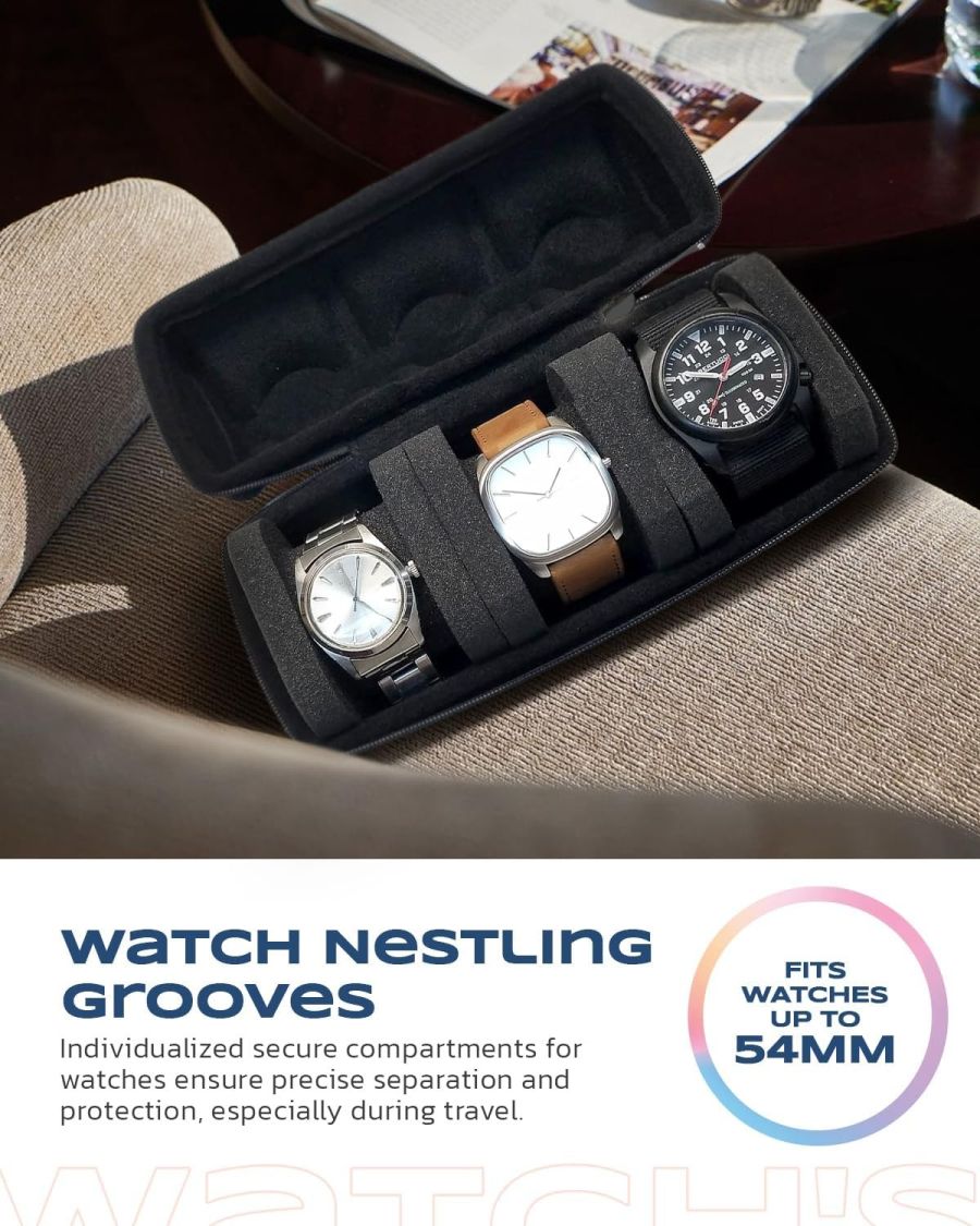 Zollyss 3 Slots Hard Watch Travel Case, Portable Nylon Zipper Storage Organizer Box for Men Women with Soft Compressible Foam Pillow, Black