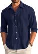 FINIVO FASHION Men's Casual Cotton Plain Button Down Shirt Long Sleeve Textured Summer Beach Shirt for Men