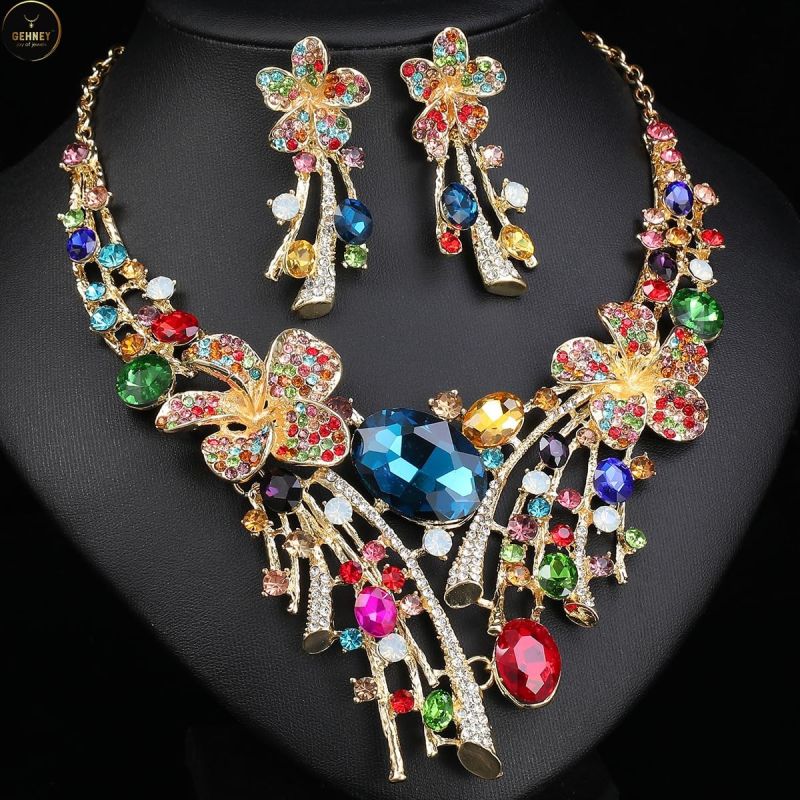 Elegant Design: This Gehney necklace & earrings set showcases a stunning arrangement of blue gemstones and AD zircon, making it a statement piece for women. Perfect for adding glamour to any outfit.