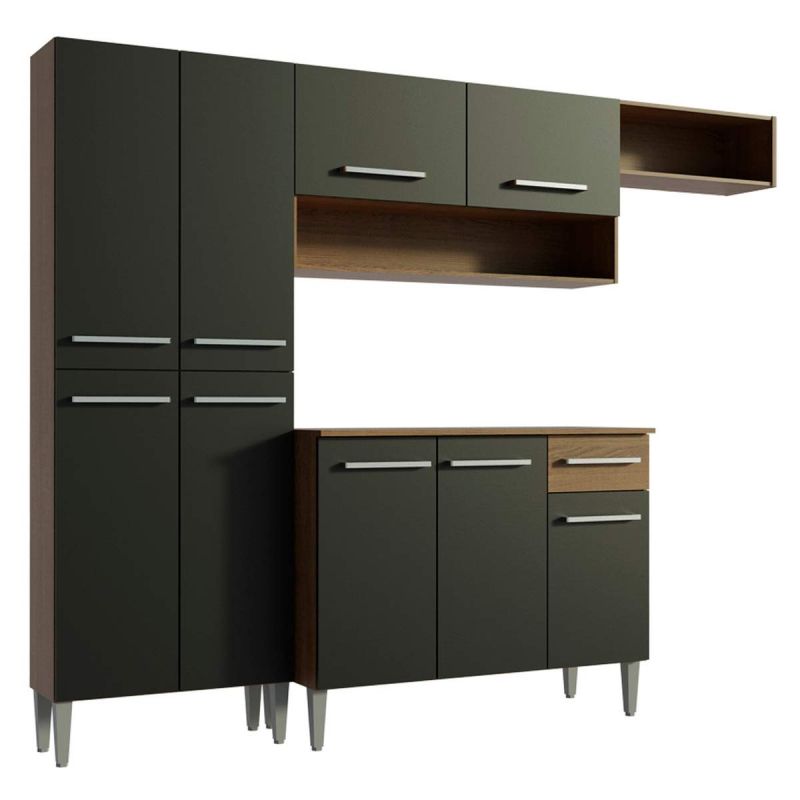 Madesa Compact Kitchen Set with Cabinets Ample Storage 229 Cm Wide with Multiple Compartments, 10 niches, 1 Drawers and PVC feet - Brown/Black