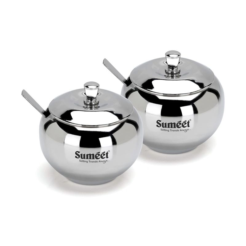 Sumeet Stainless Steel Ghee and Oil Pot, Storage Container with Spoon for Kitchen, 8.5cm Dia, 230ML -(Pack of 1), Silver